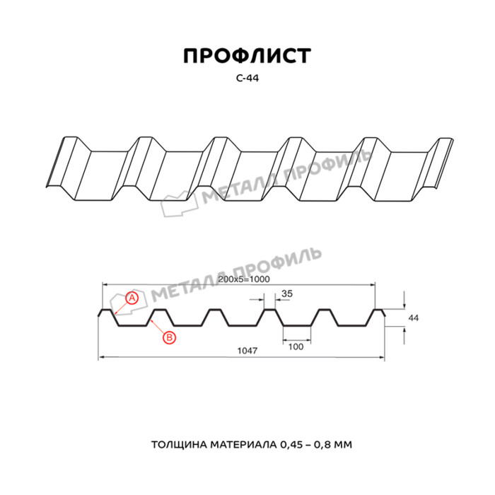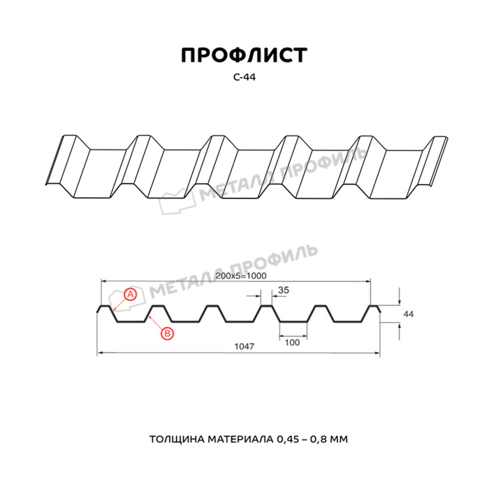 Профлист Металл-Профиль С-44 Полиэстер 0.45 мм RAL 9002 Серо-белый