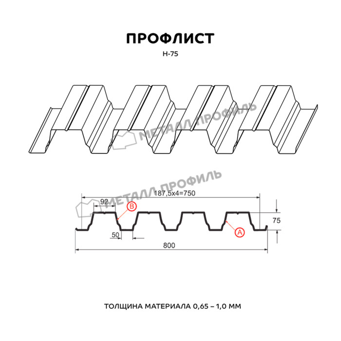 Профлист Металл Профиль Н-75 0,7 Полиэстер RAL 9002 Серо-белый