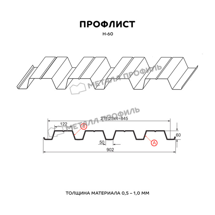 Профлист Металл Профиль Н-60 0,7 Полиэстер RAL 9002 Серо-белый