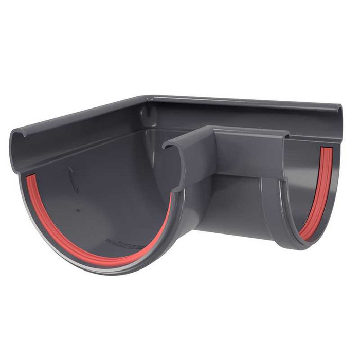 Угол желоба 90 град. универсальный ПВХ Grand Line графит (RAL 7024) Показать информацию